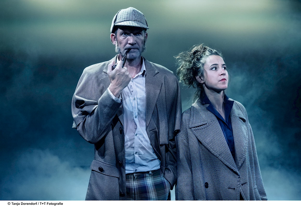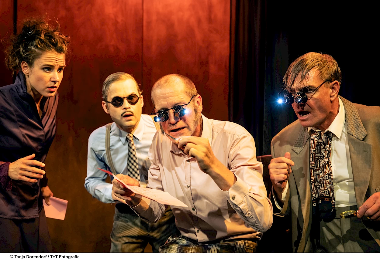 Fünf Schauspielende in über 20 Rollen in einem spannenden und humorvollen Krimi, der mit witzigen theatralen Mitteln die ganze Welt von Sherlock Holmes auf der Bühne ausbreitet.